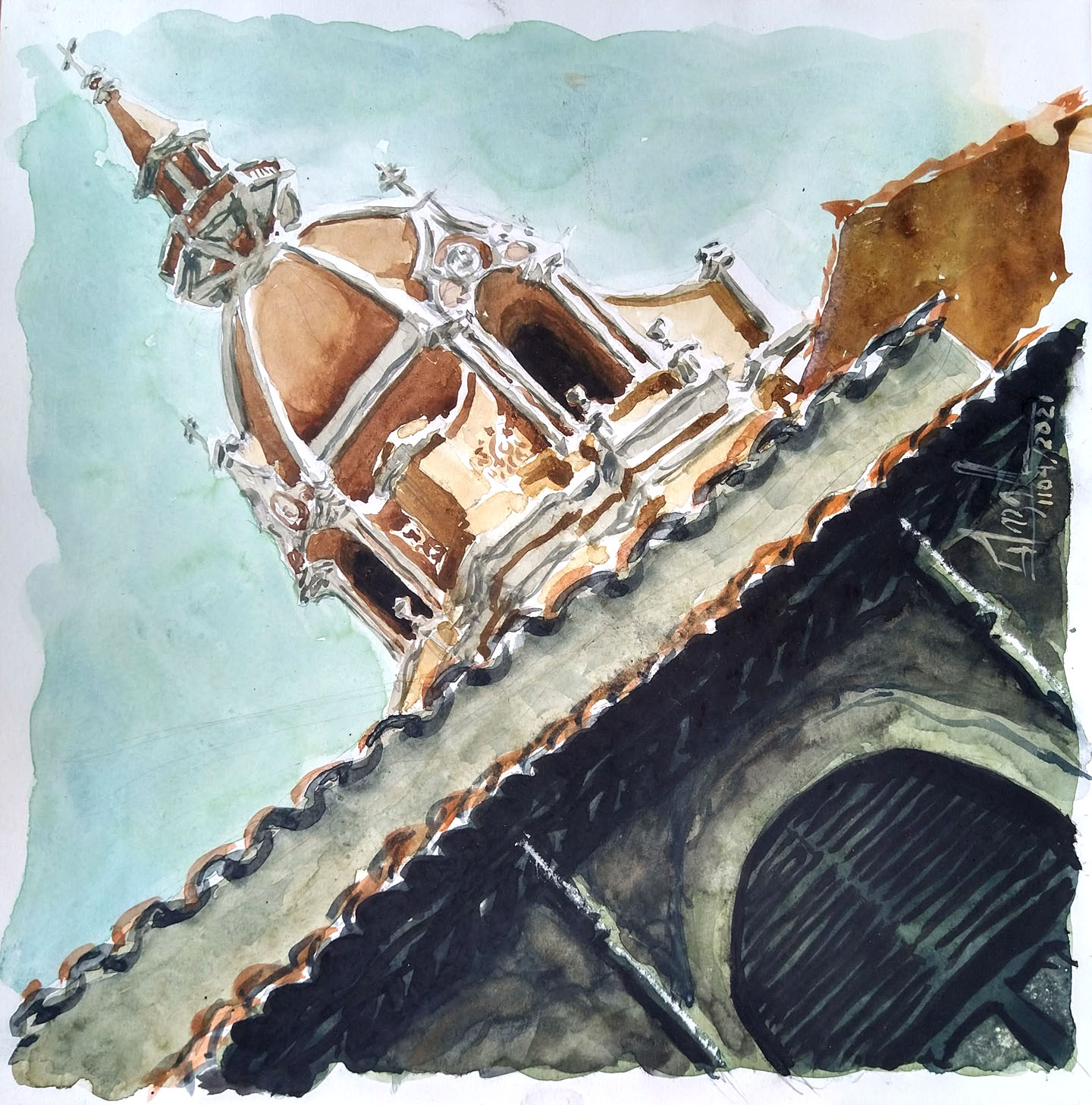 Desde el 2017 no pintaba, lo clave de estos momentos críticos y a la vez gloriosos, fue el despertar de un fuerte ímpetu por volver a pintar. Una vez en casa y en recuperación, desempolvé mis materiales y encargué los que me hacían falta. Mientras, estudiaba como materializar lo vivido, bocetarlo, hasta cumplir mi objetivo plasmando las primeras acuarelas del año.