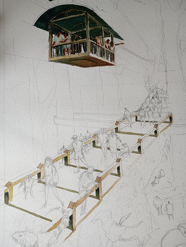 Comenzando la Pintura por el Centro de Interés Visual Arquitectónico: el Teleférico