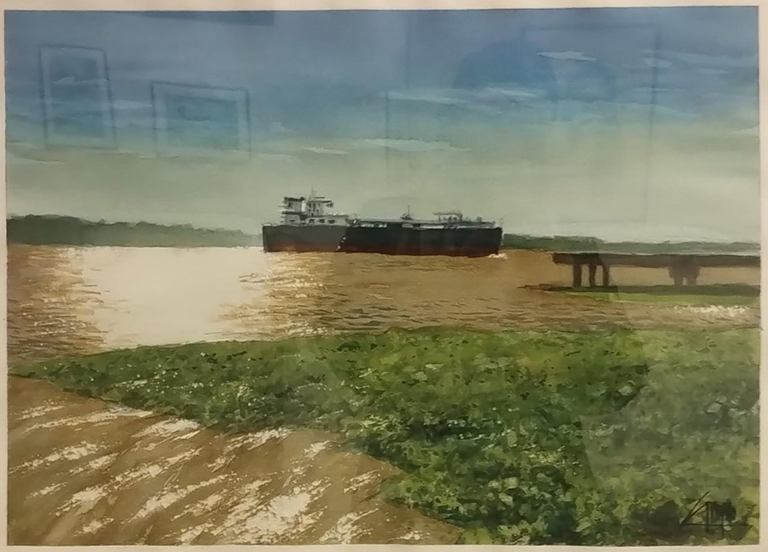 Nos fuimos al lado del muelle donde llegaría el buque y «comenzó la fiesta de la Acuarela en Vivo y en Directo; los pinceles comenzaron a danzar sobre el papel, mientras el río susurraba su propia melodía al compás de los colores.»
