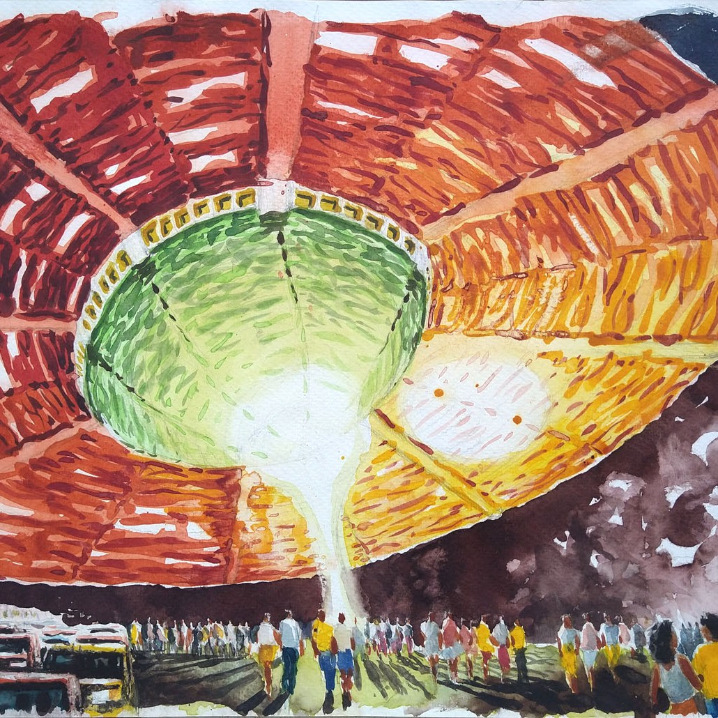 A finales del 2020 e inicios del 2021 estuve internado por covid; por las noches tuve sueños lúcidos que después bocetaba. Ya en recuperación me dediqué a pintarlos. Esto fue como un reinicio en la pintura, ya que desde el 2016 no había vuelto a pintar.