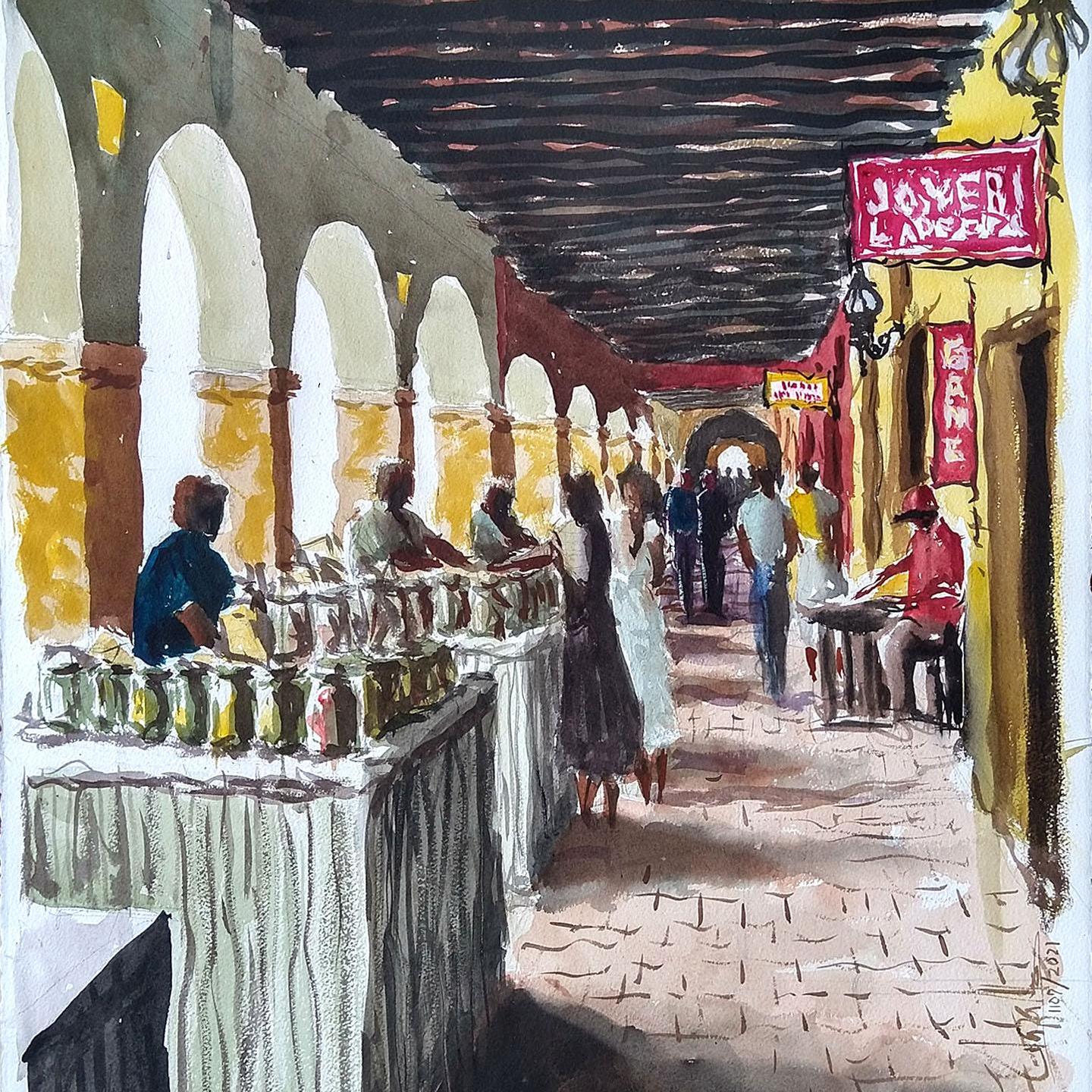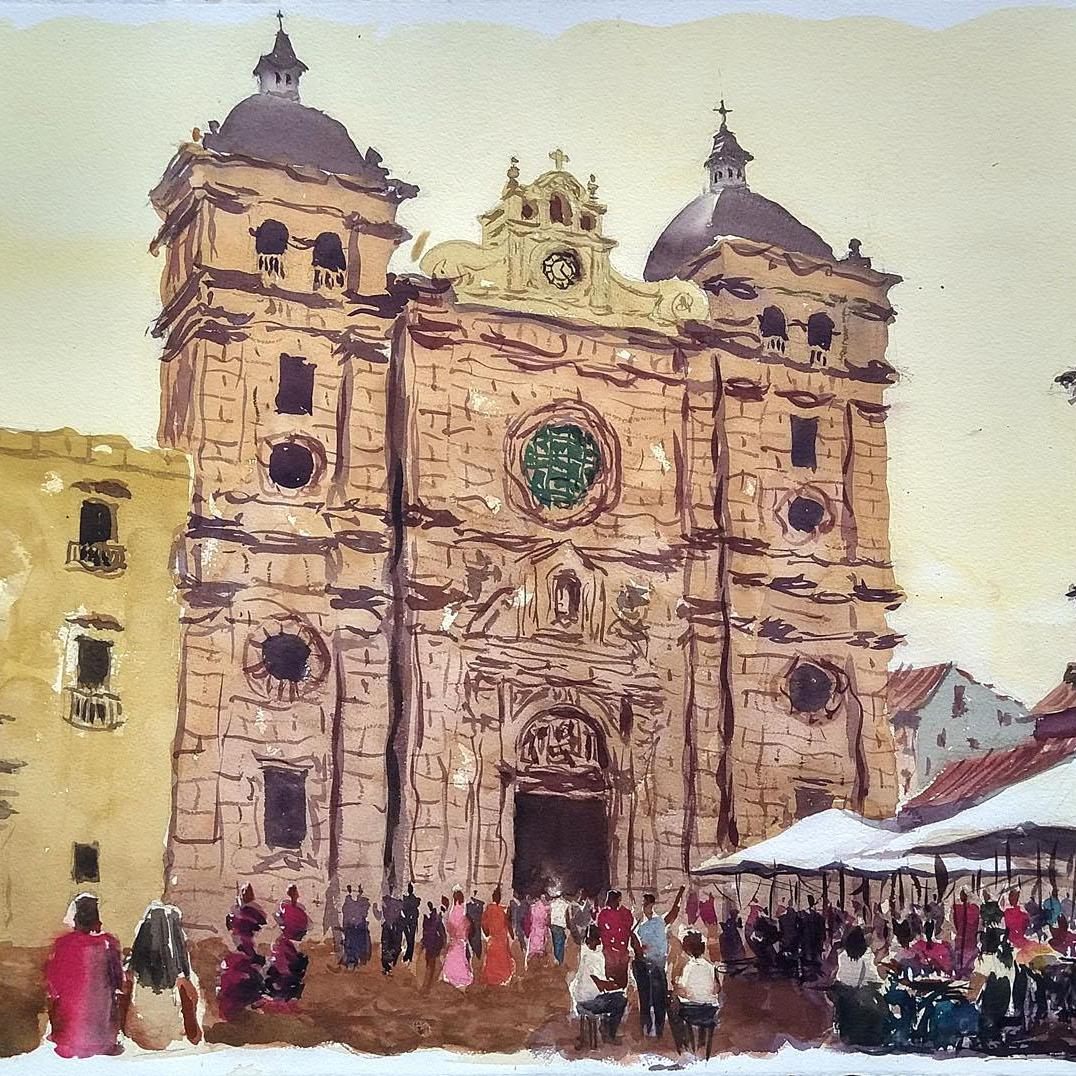 Semana Santa en Cartagena de Indias. 6 Acuarelas realizadas, estas disponibles. Abajo: Fotografías del proceso creativo.